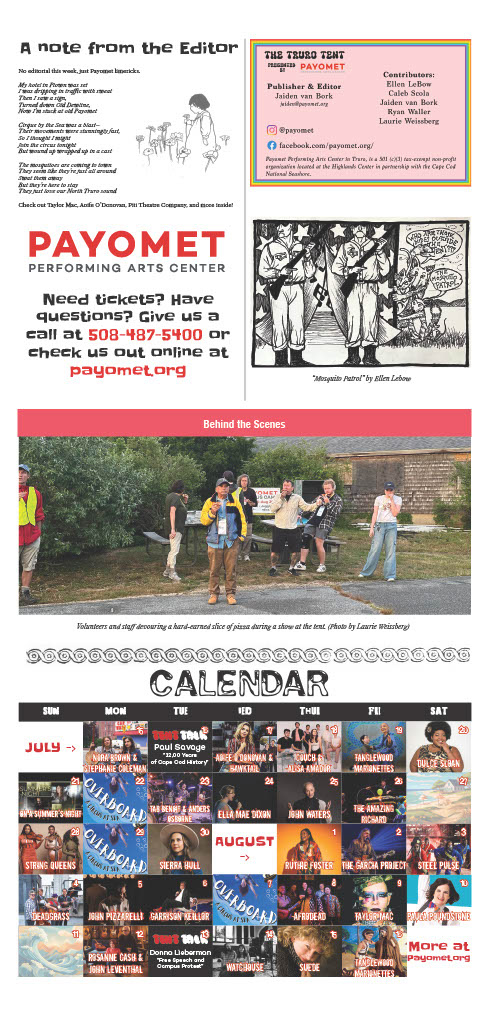 The Truro Tent was a print and digital newspaper created for Payomet Performing Arts Center, a non-profit outdoor music venue in North Truro, MA.